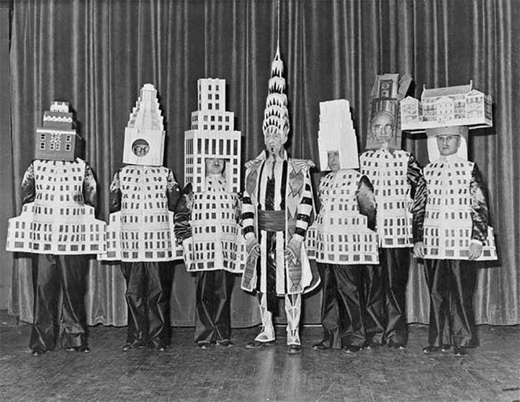 Unkown. (1931). [Famous Architects Dress as their New York City Buildings] (image). Open Culture. Retrieved from